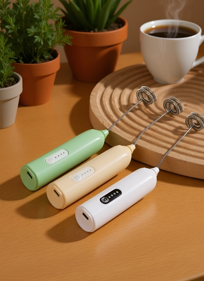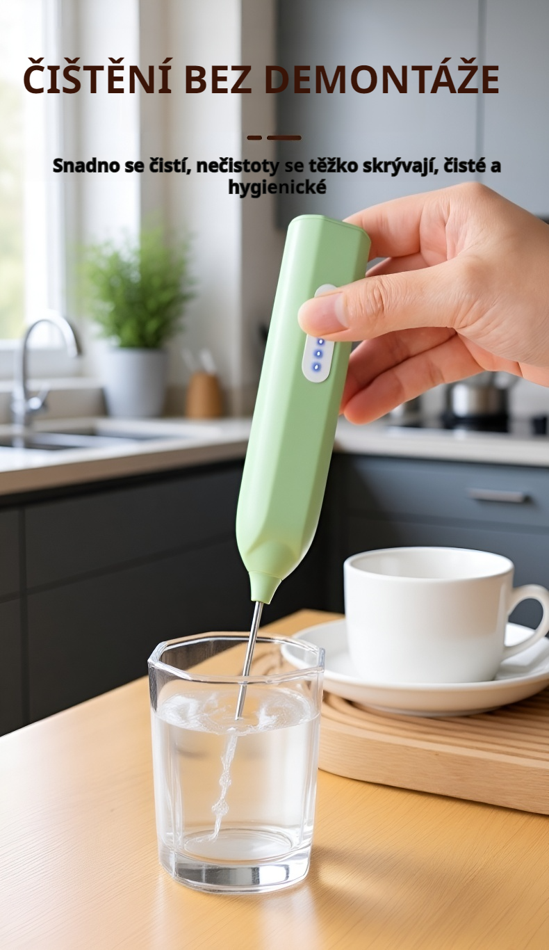 ● Bezdrátový elektrický mini šlehač na vejce umožňuje rychlé a pohodlné šlehání vajec, smetany i dalších surovin bez nutnosti připojení k elektrické síti, což oceníte doma i na cestách. ● Kompaktní a lehký design šlehače zaručuje snadné skladování i přenášení, takže jej můžete mít vždy po ruce pro přípravu snídaní, dezertů nebo omáček. ● Výkonný motor a kvalitní nerezová šlehací metla zajišťují rovnoměrné a efektivní šlehání bez námahy během několika vteřin, čímž šetří váš čas i energii. ● Jednoduché ovládání jedním tlačítkem a snadná údržba umožňují pohodlné používání i čištění, což ocení každý milovník vaření.